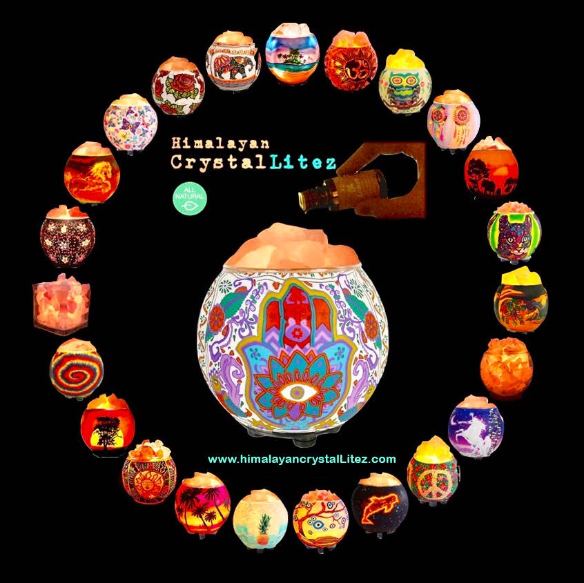 HANDCRAFTED Size: 4.5" width X 5.4" height Material: Salt Rock-Glass-Polymer Clay Purpose: Salt lamp-Essential Oil Diffuser Design:ETHNIC ELEPHANT Power Source: Electric Electric Material: 6' Ft UL Listed cord with base and dimmer switch button Light Bulb:15W B-12 Each Himalayan CrystalLitez package includes:( handcrafted glass bowl ,6 ft ul listed cord with base, 15w light bulb and 2.3 lbs salt rocks with spare ones).