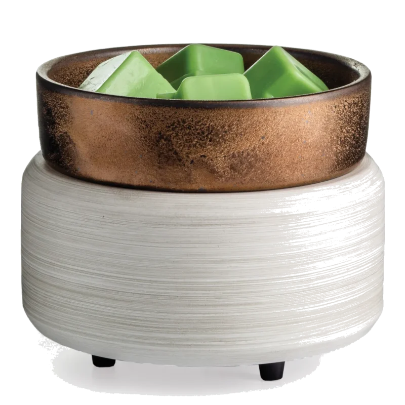 Our 2-in-1 Fragrance Warmers are the best of both worlds. They have functionality and versatility to melt jar candles on the base or use the dish included to melt wax. Make a fashionable statement at home with styles that match any decor. Recommended to use with jar candles 10 oz. or smaller. A new take on our classic Pewter Walnut style, a white brushed finish is accented by a bronze metallic dish